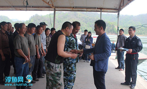演练模拟了在连续暴雨天气的状况下,千岛湖上游冲下整根树木、连串网箱等大型漂浮物,并顺流而下向拦网漂来,需要紧急行动应急处置。整个抢险分为三个小组:上游疏导组负责上游大型物体的观察与紧急处置。保网组负责用沉石下沉拦网,将搁在拦网上的垃圾清理掉,减少拦网负荷;护渔组负责在下游放流刺网赶捕作业,防止鲢镛鱼上逃至安徽水域。附近渔政组协助各抢险组做好相关工作。整个演练过程紧张有序,于10:15分整个演练圆满结束。为提高员工的应知就会技能,演练结束后,现场还举行了桨桩制作、航道设置技能比武。通过比武有六名员工脱颖而出,分获技能比武一、二、三等奖。开发总公司及集团公司有关领导为获奖者颁奖。