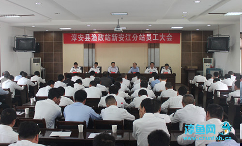 5月3日,新安江渔政分站在淳安县农业局四楼会议室召开员工大会。千发集团总经理何光喜、渔业管理部部长及渔政分站100余员工参加大会。