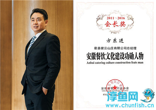披云山庄在此次大会上荣获多个奖项:方东进——安徽餐饮文化建设功勋人物、安徽省餐饮行业杰出企业家,方晓明——安徽餐饮文化建设先进工作者,曹向忠、章恒来、章小虎——安徽五星名厨,黄磊——安徽餐饮杰出高管,彭锡林——安徽餐饮优秀高管,周华峰——安徽名厨。