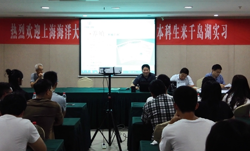 在欢迎会上,公司总经理何光喜向全体学生介绍了公司情况及千岛湖渔业产业情况。捕捞一队负责人介绍了捕捞生产环境,对实习期间的人身安全与环境保护工作作了强调。
