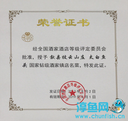 近日,全国酒家酒店等级评定委员会授予千发集团旗下歙县披云山庄“太白鱼头”国家钻级酒家镇店名菜称号。 披云山庄作为非物质文化遗产传习基地,多年来在餐饮品质和服务上一直以“育名师、推名品、建名企”为企业发展方向,不断开发出创新菜肴,凭借对消费者的全心服务和对产品坚持不懈的创新树立了良好的口碑。