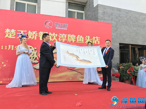 11月5日,公司总经理何光喜应邀出席阜阳楚天娇餐饮集团淳牌鱼头店新店开业庆典,并代表公司向酒店赠送了鱼拓。