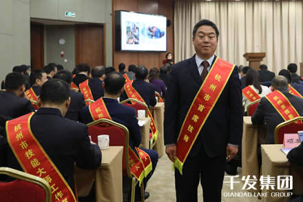 1月18日,第44届世界技能大赛参赛总结表彰暨杭州市高技能人才建设推进会在杭州召开,千发集团捕捞一队队长叶志清被授予“杭州市首席技师”并受到大会表彰,叶志清也成为杭州市首位荣膺首席技师的淡水捕捞从业人员。