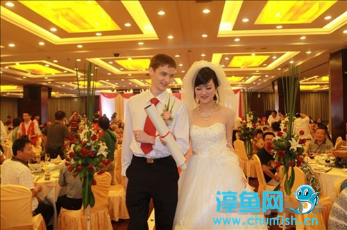 婚宴现场其乐融融,披云百变徽宴邀请专业演员为这对跨国新人进行了精彩的演出:安徽省经典戏曲——黄梅戏;中国川剧经典表演——变脸,令现场的气氛再一次沸腾。(潘旻)